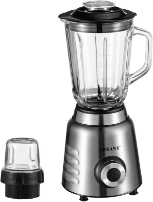 La SOKANY SK-03048 es una licuadora multiusos de 800 W con funcionalidad 2 en 1 que funciona como licuadora molinillo. Cuenta con una jarra principal de 1,5 litros y una jarra más pequeña para moler especias y otros ingredientes pequeños.