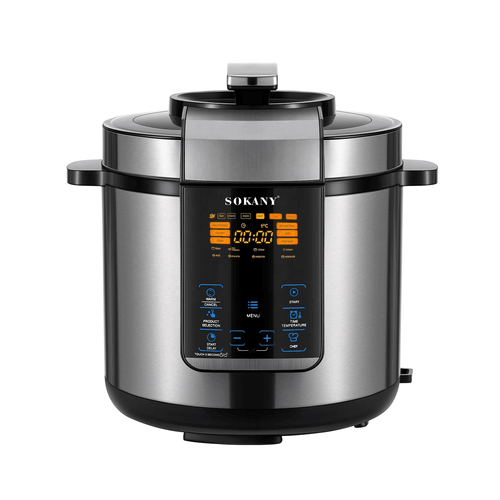 Olla de Presión Eléctrica Multifunción Sokany de Acero Inoxidable y Alta Calidad para el Hogar con Capacidad de 7L, es una olla eléctrica multifunción de alta capacidad, diseñada para facilitar la preparación de una gran variedad de comidas en menos tiempo y con mayor comodidad.